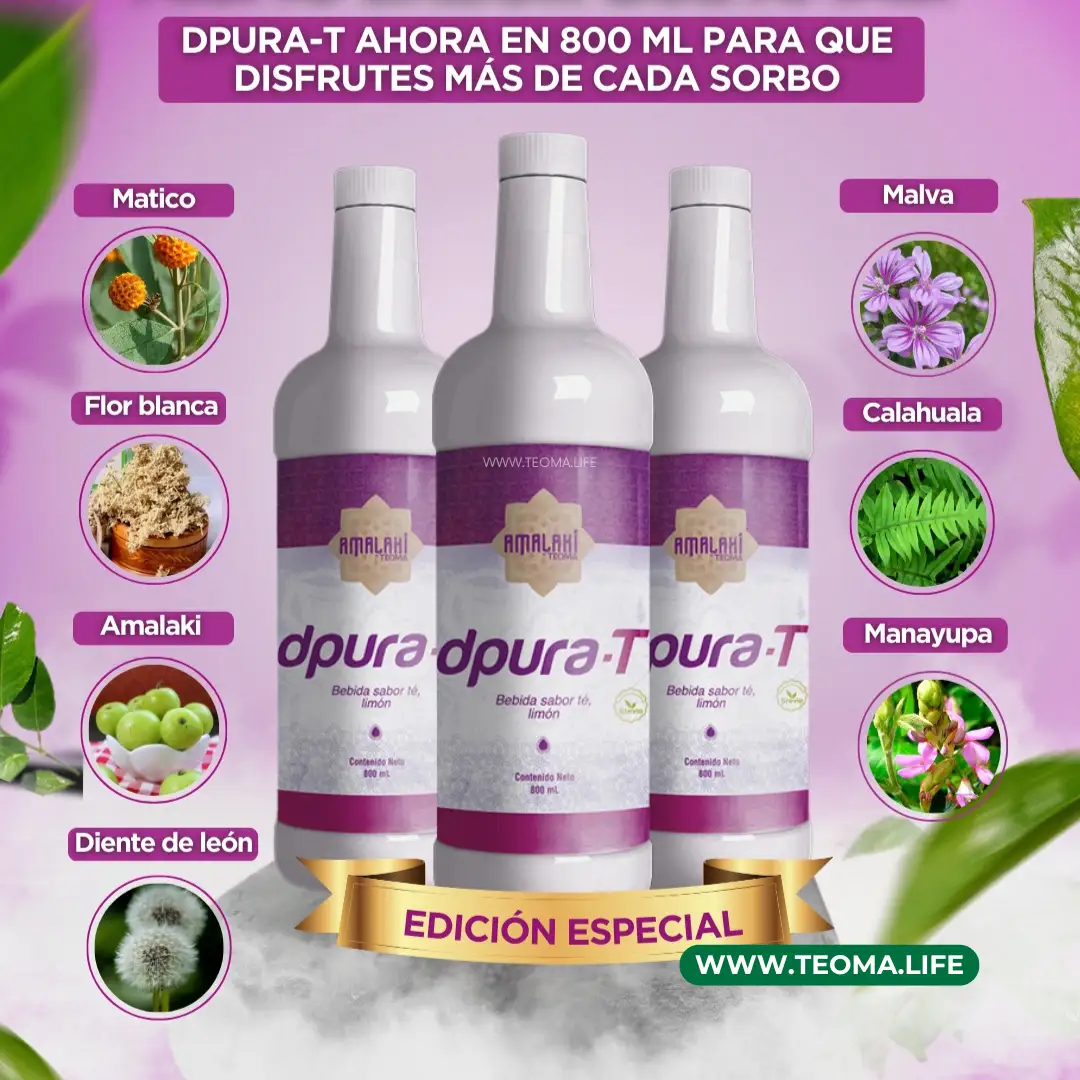 Ahora edición especial de 800 ml. Más contenidp, el mismo bienestar. Presentamos el nuevo Dpura-T de 800 mL, la fórmula nutracéutica perfecta para desintoxicar tu cuerpo de manera natural y efectiva.