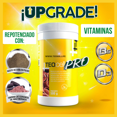 TEO CELL es una combinación de más de 20 frutas, plantas, cereales, vitaminas y minerales con propiedades para mejorar el sistema inmunológico en los adultos. Contiene ingredientes naturales como el té verde, camu camu, noni, graviola y maíz morado; reconocidos por ser excelentes antioxidantes. Además, contiene aguaje, sacha inchi, manzanilla y otras plantas y frutos que hacen de este producto una potente combinación de ingredientes ricos en antioxidantes de origen natural.